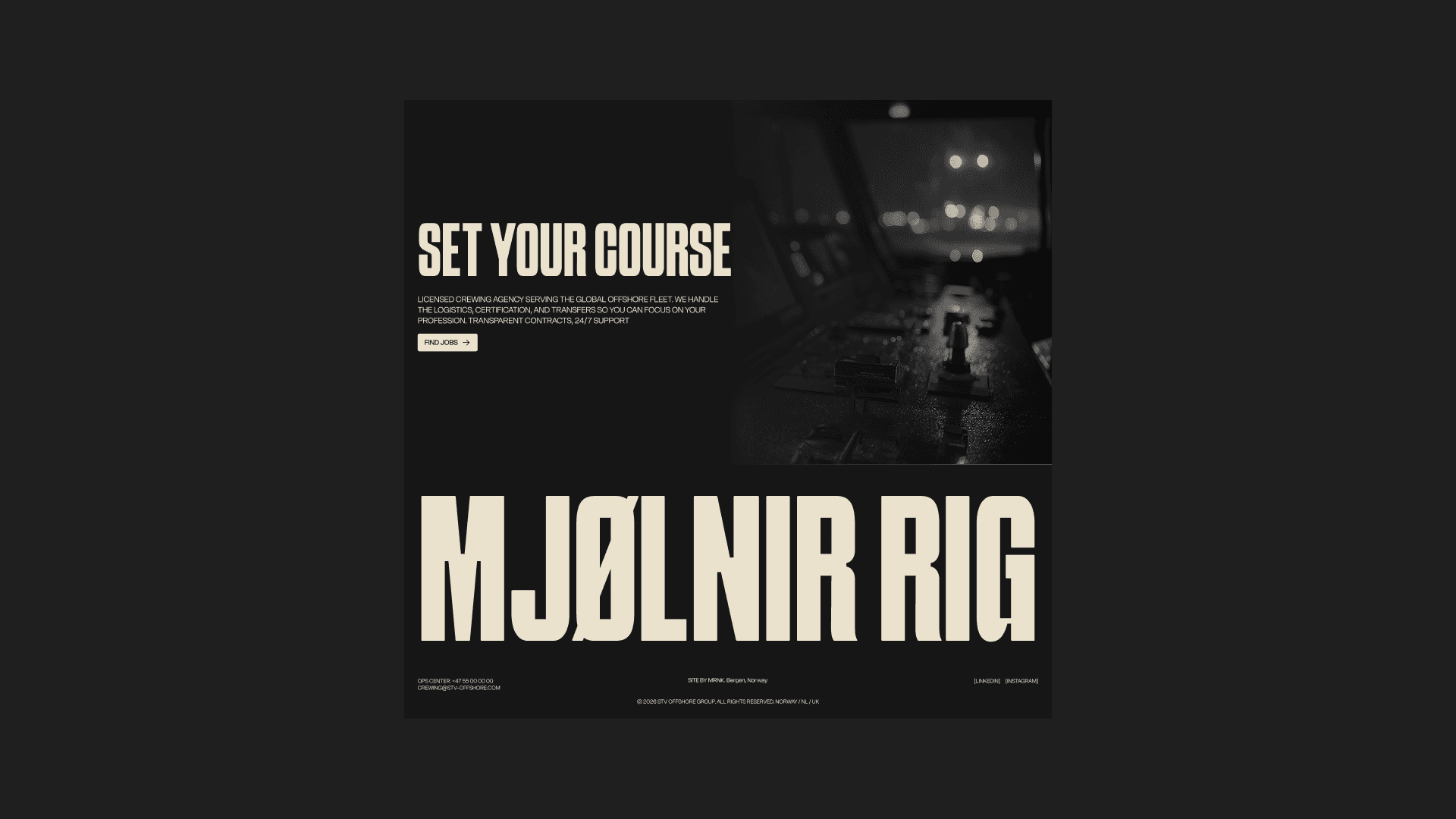 Mjølnir Rig is a premier crewing agency based in Stavanger, operating in one of the harshest environments on earth—the North Sea. The objective was to build a digital presence that reflects the sheer gravity of offshore operations, moving away from the generic, sanitized templates of corporate recruitment.